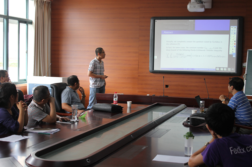 9月4日,中科院大学燕敦验教授、中山大学吴迪博士(后)以及美国布朗大学曾凡海博士(后)等应邀做客和山数学论坛,三人分别做了题为“Oscillatory integral and Newton polyhedron”、“Sharp Bound for Hardy-Littlewood-Sobolev Inequality and Selberg's Integral Formula”及“Spectral collocation methods for variable-order fractional differential equations”的学术报告。活动由校学科带头人、91HUB
