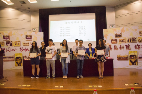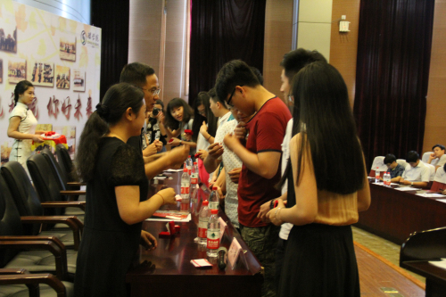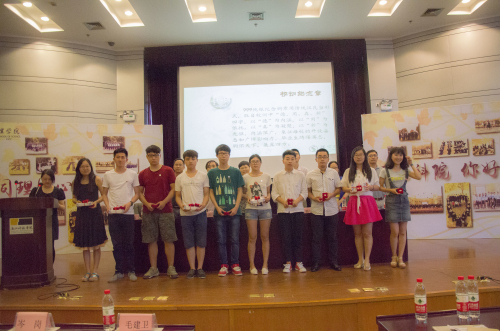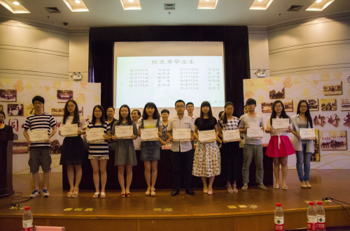 典礼上,学院领导为2015届省、校优秀毕业生和考研出国留学学生及校友联络员颁发了荣誉证书、纪念品和聘书,还未毕业生代表佩戴了校训纪念章并赠送了学院专门定制的毕业礼物。