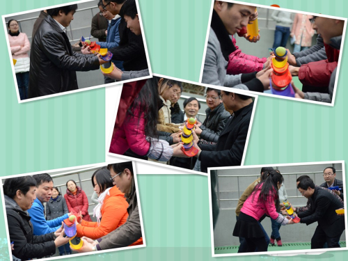 在此起彼伏的呐喊声中,一项项惊险刺激的项目如勇往直前(袋鼠跳)、齐心协力(大脚板)、共同奋进(击鼓颠球)、任重道远(珠行万里)激起了老师们的参与热情,各组的比分你追我赶,好不热闹。最终,四支队伍以各项比赛累计的总分决出了名次。