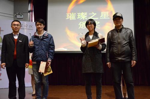 会上,陶祥兴发表了热情洋溢地致辞。他首先对获奖个人和集体表示热烈的祝贺,并强调学院会始终将教书育人放在首要位置,致力于培养厚基础、强应用、高素质,具有国际视野的优秀人才,不断给予理学学子众多政策支持和精神鼓励。 在现场响起的热烈掌声和欢呼声中,主持人上台宣读了2014年 “理学·璀璨之星”十人获奖名单:周婷婷、王凯宇、黄立媛、赵梦倩、张晟畅、陈冠维、张东,91HUB