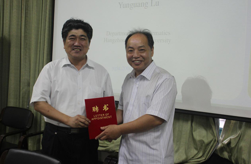 哥伦比亚国家科学院院士、浙江省钱江学者特聘教授、杭州师范大学陈建功研究院执行院长陆云光教授受聘我校数学学科客座教授。受聘仪式于7月1日在91HUB