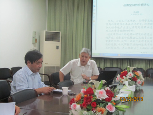 2013年9月25日下午,原北京师范大学校长、温州肯恩大学(筹)校长陆善镇教授应邀作客和山数学论坛第52讲,为数学与信息科学系师生做题为“函数空间的分解结构”的学术报告。活动由校数学学科带头人陶祥兴教授主持,数学与信息科学系部分教师聆听了报告。