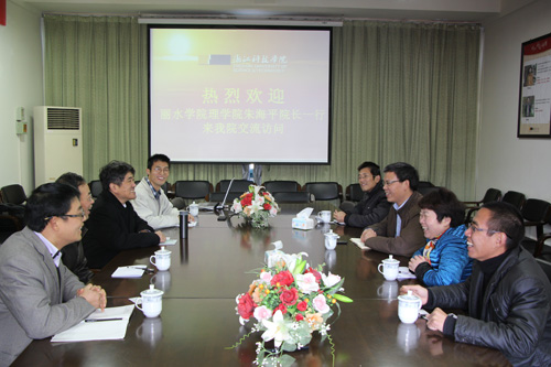 朱海平和岑岗分别介绍了各自学院的情况, 双方就物理学科建设、新专业遴选与申报、硕士点立项建设、实验室建设、师资培养等方面做了广泛的交流, 特别就光源与照明、光电信息科学与工程专业建设进行了较为深入的探讨。