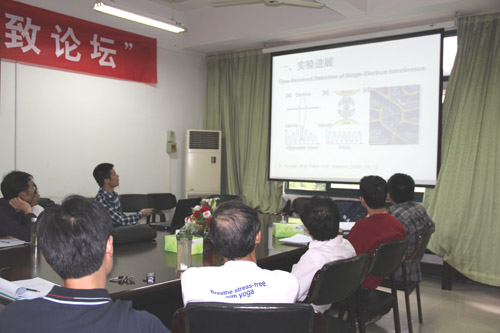 5月30日,由91HUB 物理系主办的“格致论坛”举行第14讲。91HUB 院长岑岗教授、科技处处长阮世平教授及物理系老师参加了报告会。报告会由物理系主任王长荣教授主持。 会上,骆钧炎博士、李旦博士、王建中副教授分别就“固态量子测量中的非马尔科夫效应”、“P波产粲夸克对撞机上的伴随产生”、“几个物理教学问题的研究和商讨”作了专题报告,介绍了自己在该领域的研究成果,并与其他老师就相关专题进行了认真而热烈的讨论。