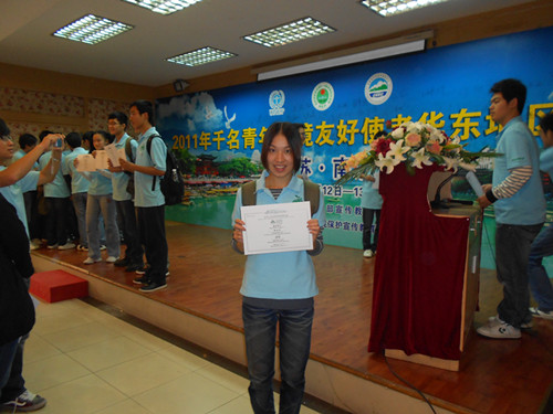 应用物理学092班的程安丽同学,作为浙江科技学院的唯一一名代表,随浙江省代表团参加培训,并获由国家环境保护部授予的“青年环境友好使者”称号。