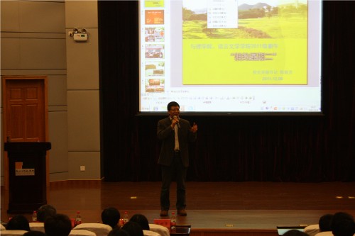 、语言文学院新生“相约星期二”的和谐画面。