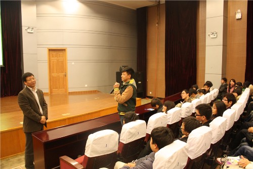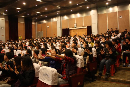 互动环节掀起了全场的高潮。如何增强班级凝聚力?如何做到坚持于一件事或一项事业?如何有参与公众活动的积极性?如何自学?如何建立良好的人际关系?陈书记皆以翔实的事例、深刻的道理、简洁的语言和真诚的态度作了解释回答。其中,“有志于立人”,“认识一件事,爱一件事,乃至坚持做一件事”,“关键在于自我定位,设计好自己的职业生涯”等观点,既温馨又励志,给同学们留下了深刻的印象。