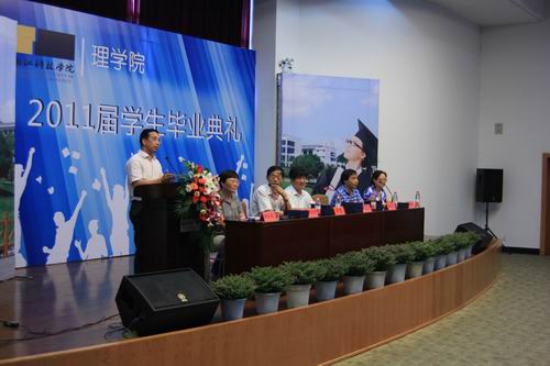 院长岑岗深情发言,他首先代表学院党政班子和全体教师向学业有成,即将告别母校、踏上新的人生征途的2011届毕业生表示真挚的祝福,向为同学们成长成才而付出辛勤劳动的教师们表示由衷的谢意。同时,他向毕业生们提出三点希望:一是,从校园到社会意味着角色的转换,伴随着理想和现实的不断碰撞,要积极投入社会大熔炉,锐意进取,奋发图强;二是,作为一名科院学子,无论身在何处,崇德尚用四字隽永心中,不忘创新精神和求真情怀;三是,大学永远是同学们的精神寄托和理想家园,希望同学们常回校看看。
