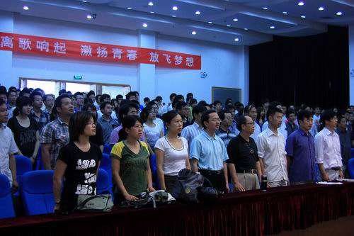 由各班毕业生代表合作朗诵的“骊歌唱响,青春起航”将典礼推向了高潮,典礼在歌曲《放心去飞》中圆满落幕。