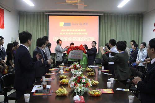 与杭州东忠科技有限公司共建实习基地揭牌仪式在学院会议室举行。副校长赵东福、党委组织部部长李明、教务处长罗朝盛、副处长朱春凤、学生处处长金建勋、设备处副处长陈烨、学院党政领导班子、东忠集团有关领导、校友代表、实习基地培训班学生参加了揭牌仪式。揭牌仪式由91HUB