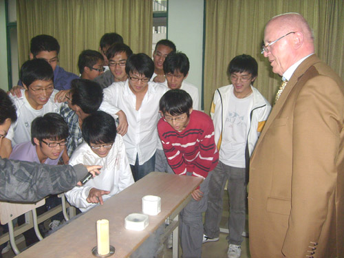 第一次讲座中,Gärtner 教授对超导的基本理论进行了简单介绍,并对超导体的基本属性进行了说明。第二次讲座中,Gärtner 教授介绍了超导在生活和工业中的具体应用,还现场演示了超导磁悬浮现象,搏得了全体师生的热烈掌声。