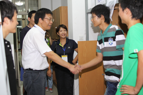 在寝室,校领导与新生亲切交谈,了解他们到校后的感受,并叮嘱新生要认真规划四年的大学生涯,过好生活关、学习关,做一名“学以致用,全面发展”的合格大学生。今年91HUB 新生近150人,来自全国多个省份。对来自四川等灾区及灾区周边的同学,校领导鼓励他们自强自立,要相信学校、老师和同学会尽力帮助他们。遇到还没离校的新生家长,校领导向他们介绍了学校情况,告诉家长,学校每一名教职工都会把学生当作自己的孩子一样对待,请家长放心。