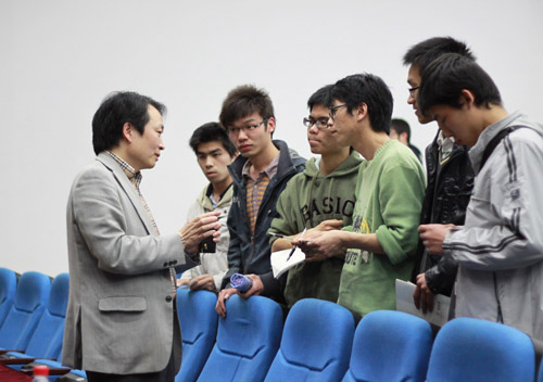 讲座结束后,仍有不少同学不愿离去,和丁总做了面对面交流,大家表示丁总精辟的论述、独到的见解使他们受益匪浅。