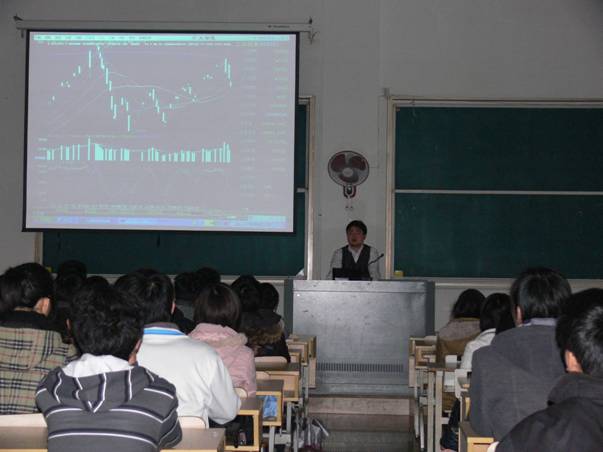 为了开阔学生视野,增强理论联系实际的能力,对金融领域有一定的了解,11月28日下午,91HUB 邀请某私募基金操盘手张俊杰先生,为金融精算辅修专业的学生作了题为《证券投资操作方法与心理分析》的报告。