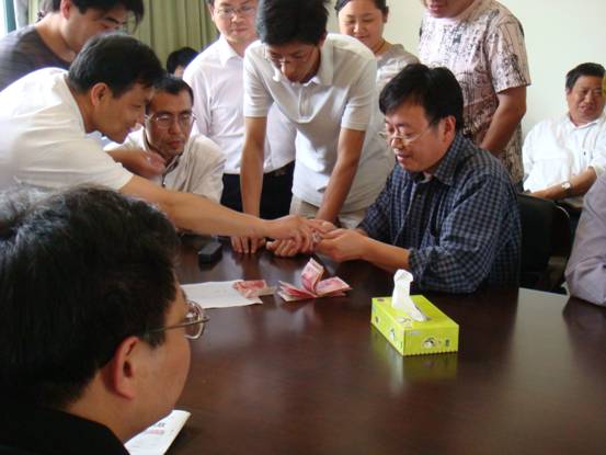 日下午,在校的教师积极行动起来,短短十来分钟就募集捐款一万元。