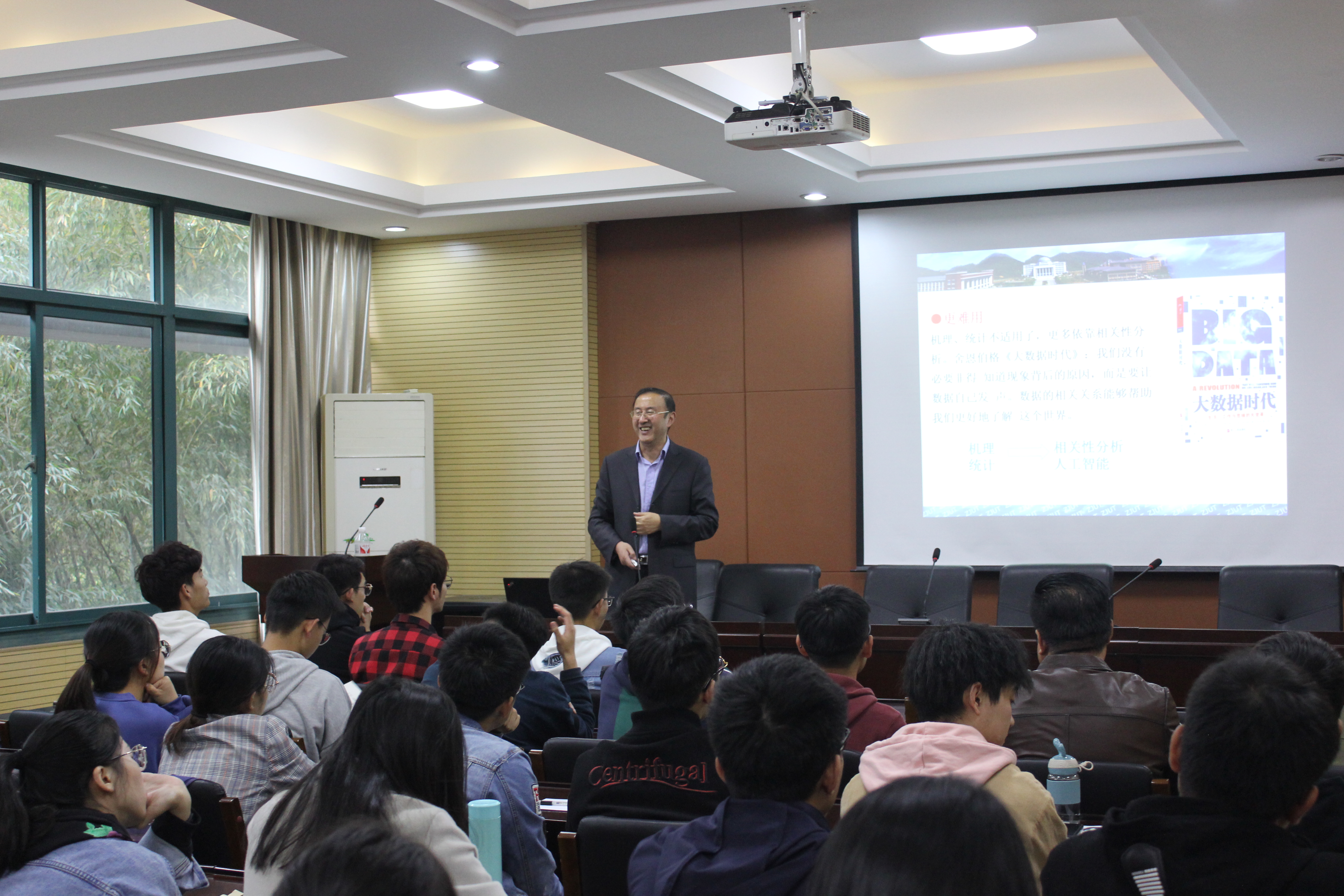 教学论坛,做了“大数据研究进展与人才培养”的专题报告。我校教师、本科生、研究生100余名师生共同听取了报告。报告由浙江科技学院党委委员、91HUB