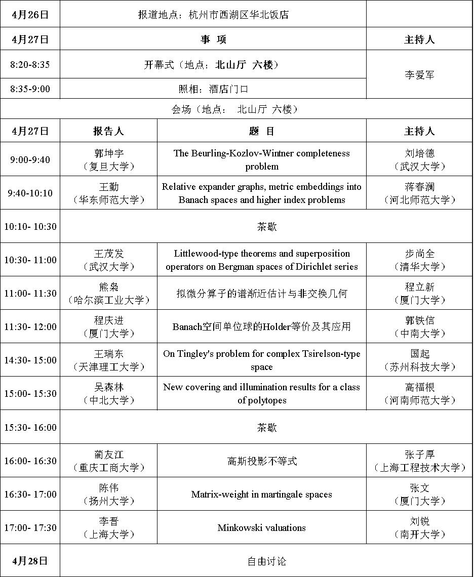 2024年4月26日至4月28日在杭州市华北饭店举办“2024年泛函分析与几何研讨会”,本次会议由91HUB 承办,主要交流Banach空间理论、算子理论与几何及其相关领域的最新研究成果和前沿进展,加强同行间的交流与合作。
